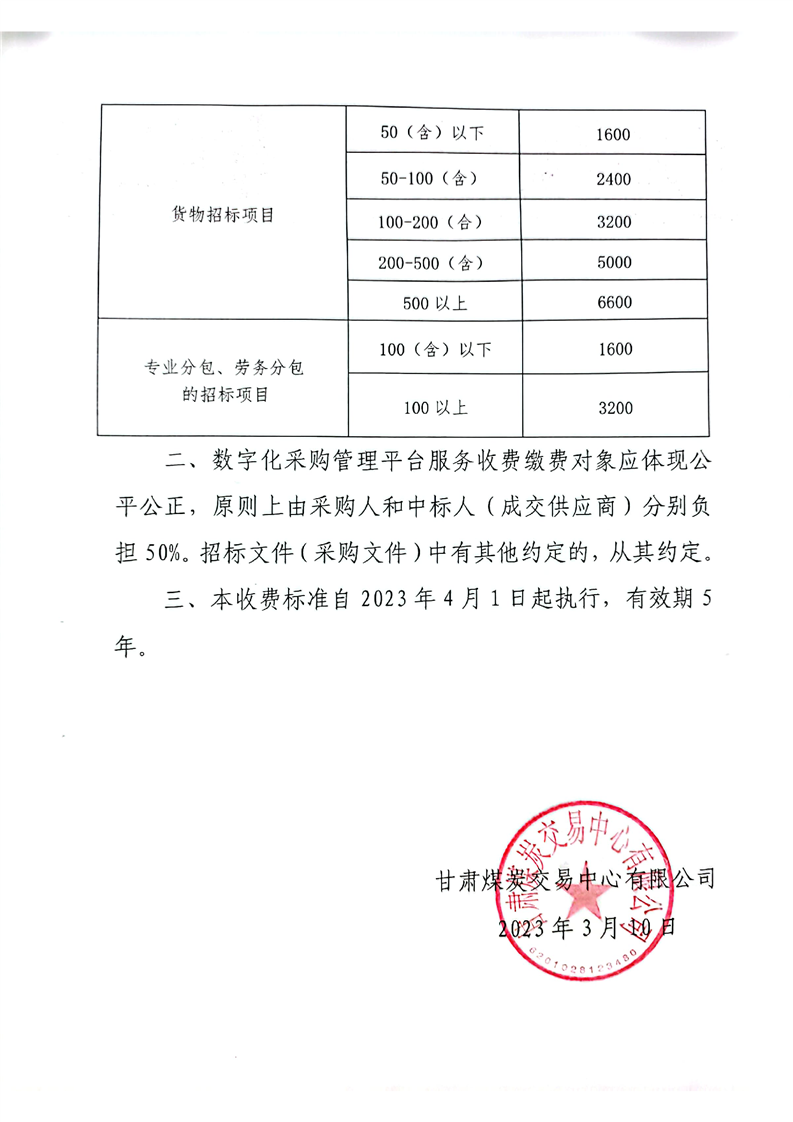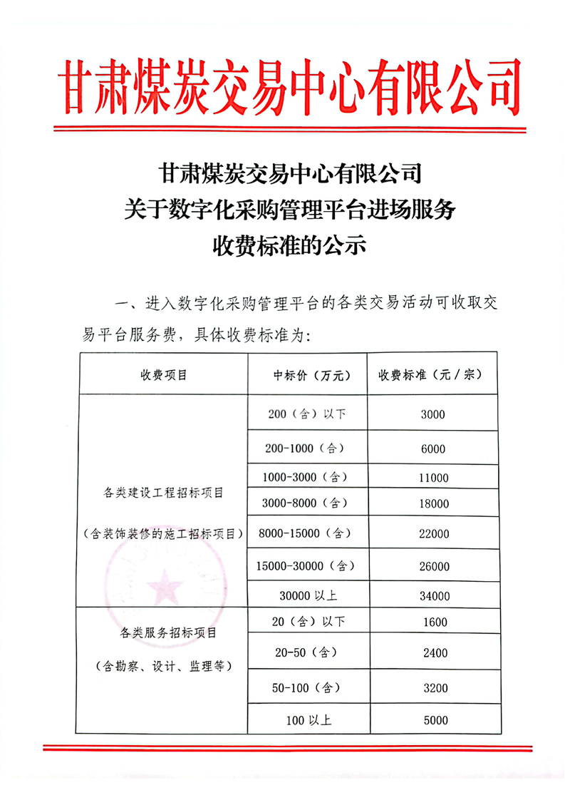關于數(shù)字化采購管理平臺進場服務收費標準的公示